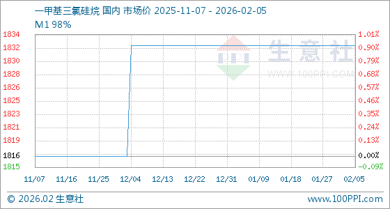 2月5日,生意社一甲基三氯硅烷基准价为1833.33元/吨,与本月初持平。